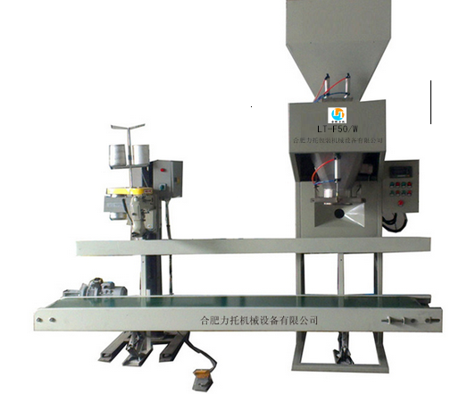 該機是人工協助上袋自動稱重、夾袋、充填、振動、推袋,輸送袋傳遞進行自動縫包或封口,